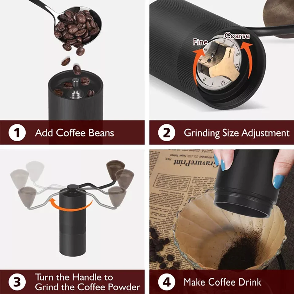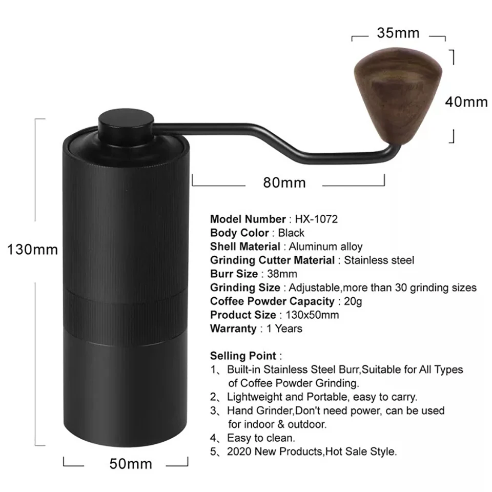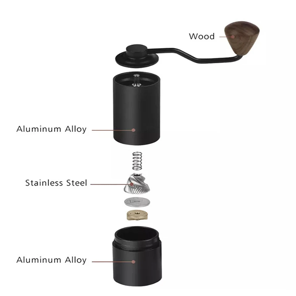 محمصة لدغ صغيرة من الألمونيوم الإيطالية مطحنة قهوة إسبرسو يدوية مزدوجة التحمل قابلة للضبط أدوات من الفولاذ المقاوم للصدأ