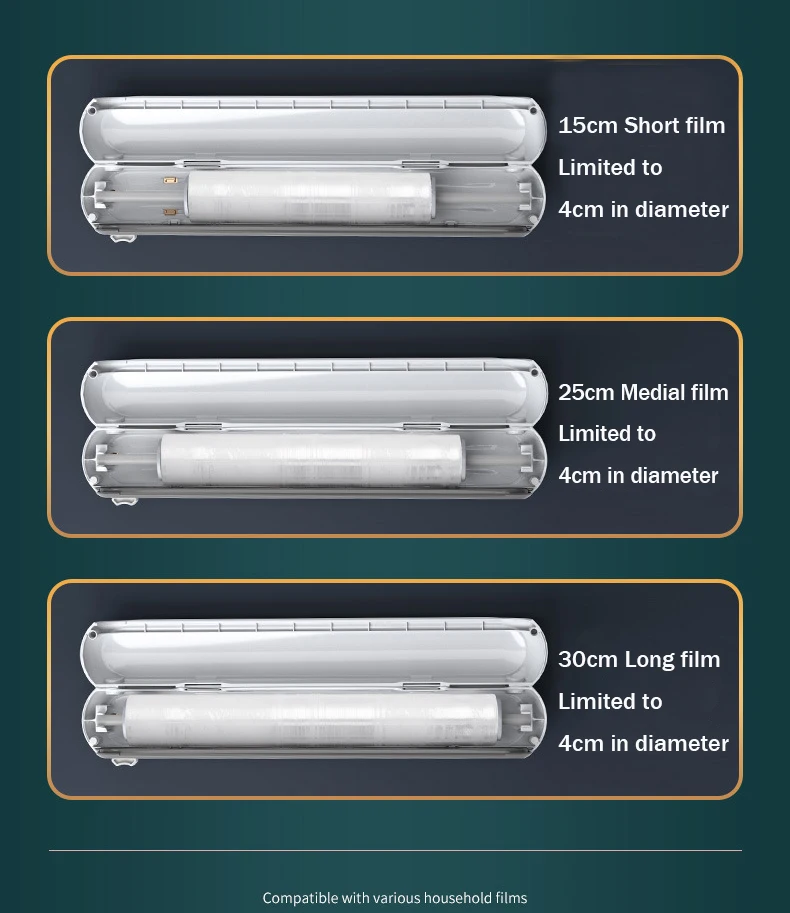 Friendly reminder:The outer diameter of the packages should be≤1.57 inches/4 centimeters and length≤12 inches/31cm.Confined with the normal inner diameter of the rolls, please pay more attention to the inner diameter to restore your filling.This plastic wrapping distributor with the cutter is for the family.